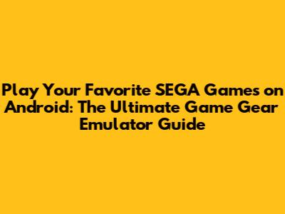 Top Game Gear Emulators for Android: Your Go-To APKs