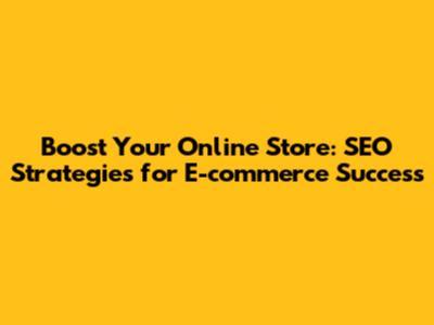 Boost Your Online Store: SEO Strategies For E-commerce Success