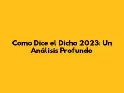 Como Dice El Dicho 2023: Un Análisis Profundo