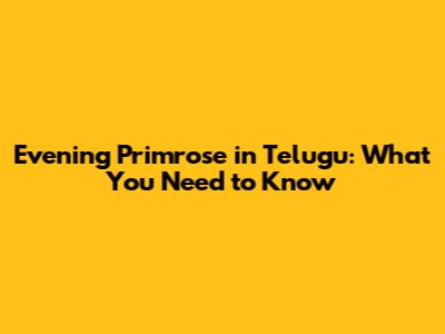 Evening Primrose In Telugu: What You Need To Know