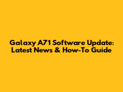 Galaxy A71 Software Update: Latest News & How-To Guide