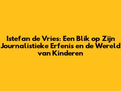 Istefan De Vries: Journalist, Kinderen En De Impact Van Zijn Werk