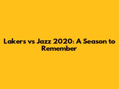 Lakers Vs Jazz 2020: A Season To Remember