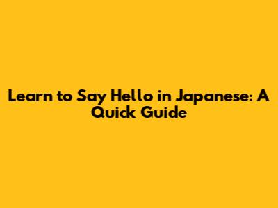 Learn To Say Hello In Japanese: A Quick Guide
