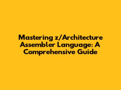 Mastering Z/Architecture Assembler Language: A Comprehensive Guide