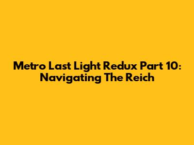 Hey guys! Welcome back to our epic Metro Last Light Redux walkthrough. In this tenth installment, we're diving headfirst into one of the game's most intense and visually striking locations: The Reich. This part of the game is all about pushing forward, facing down formidable enemies, and uncovering more of Artyom's haunting journey. So, grab your gas mask, check your ammo count, and let's get ready to survive the horrors that await us in this heavily fortified metro station.