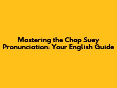 Nailing The Chop Suey Pronunciation: A Guide For English Speakers