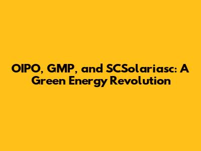 OIPO, GMP, And SCSolariasc: A Green Energy Revolution