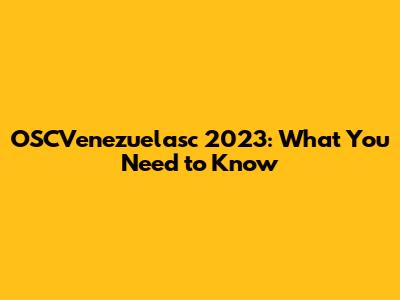 OSCVenezuelasc 2023: What You Need To Know