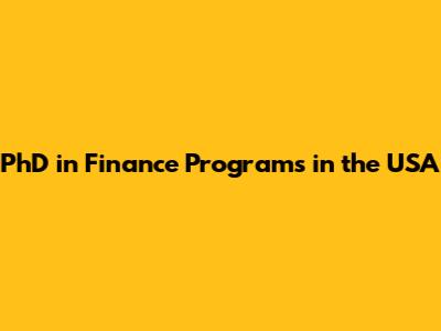 PhD In Finance Programs In The USA