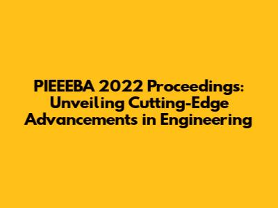 PIEEEBA 2022 Proceedings: Advancements In Engineering