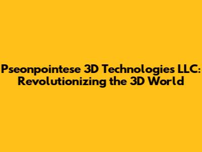 In the ever-evolving landscape of technology, Pseonpointese 3D Technologies LLC stands out as a beacon of innovation, driving advancements in three-dimensional solutions across various industries. This article delves into the core aspects of Pseonpointese 3D Technologies LLC, exploring its mission, services, technological advancements, and its impact on the broader tech ecosystem. Whether you're a tech enthusiast, industry professional, or simply curious about the future of 3D technology, this comprehensive overview will provide valuable insights into the groundbreaking work being done at Pseonpointese 3D Technologies LLC. Let's explore how Pseonpointese 3D Technologies LLC is shaping the future, one dimension at a time.