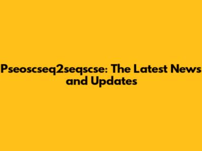 Pseoscseq2seqscse: The Latest News And Updates
