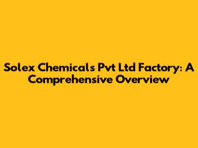 Solex Chemicals: A Deep Dive Into Operations & Innovation