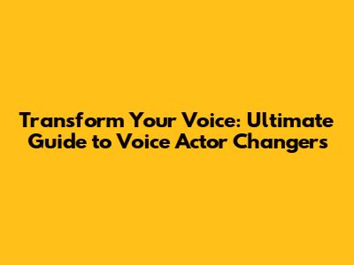 Transform Your Voice: Ultimate Guide To Voice Actor Changers