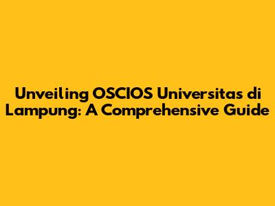 Unveiling OSCIOS Universitas Di Lampung: A Comprehensive Guide